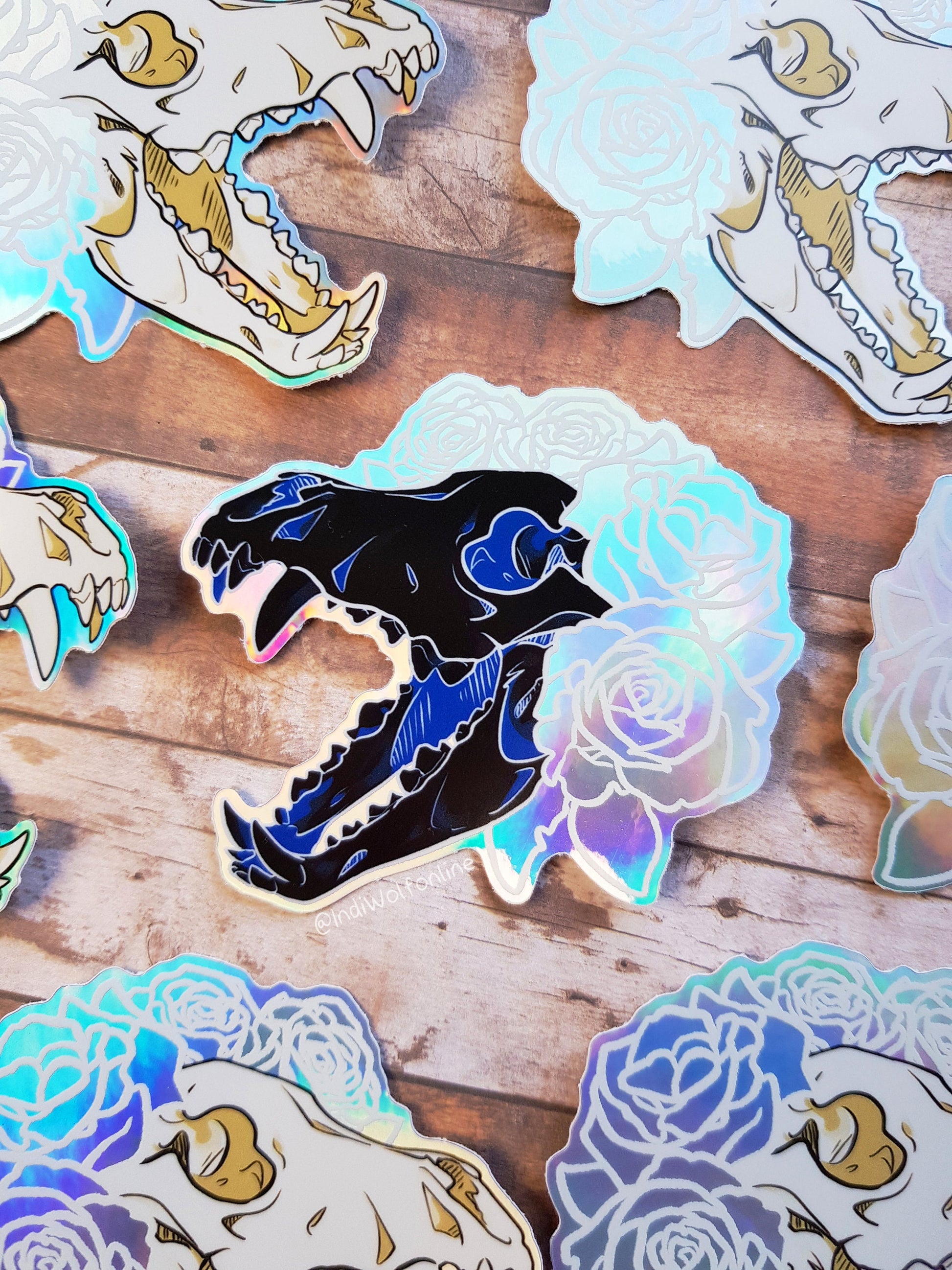 Negative Wolf Skull - Holographic Vinyl Sticker